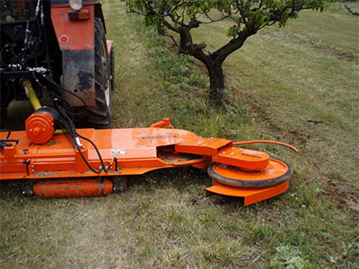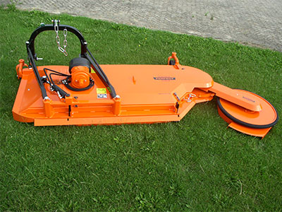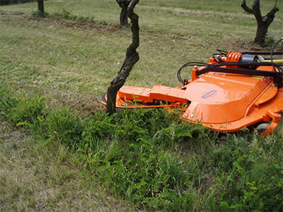 Садовая газонокосилка RF имеет большой вынос и маятниковый рычаг; такое сочетание значительно облегчает скашивание травы и сорняков между деревьями; кроме того, благодаря большому выносу можно косить далеко за колеей трактора.