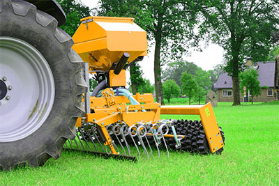 - Подсев: навесная сеялка точно сеет и распределяет семена трав. Подсев необходимого количества молодых качественных трав в дернину, чтобы поддерживать её в отличном состоянии.